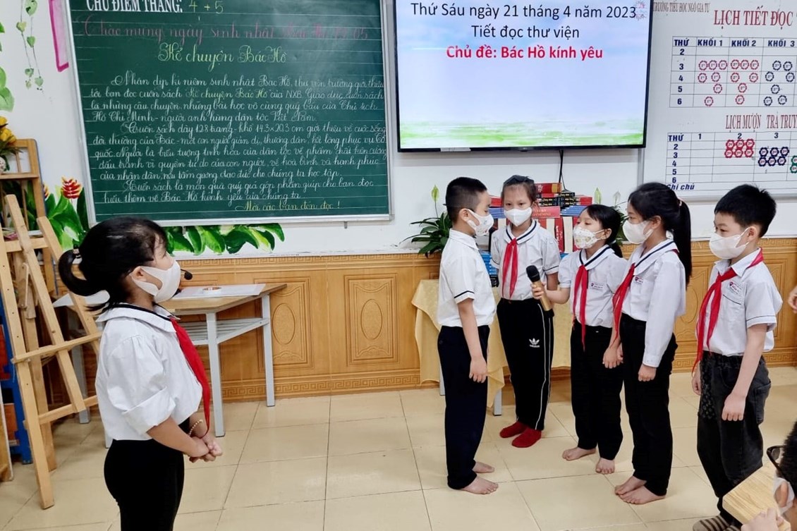 tại thư viện. Học sinh thể hiện tốt các hành động và lời nói của nhân vật qua