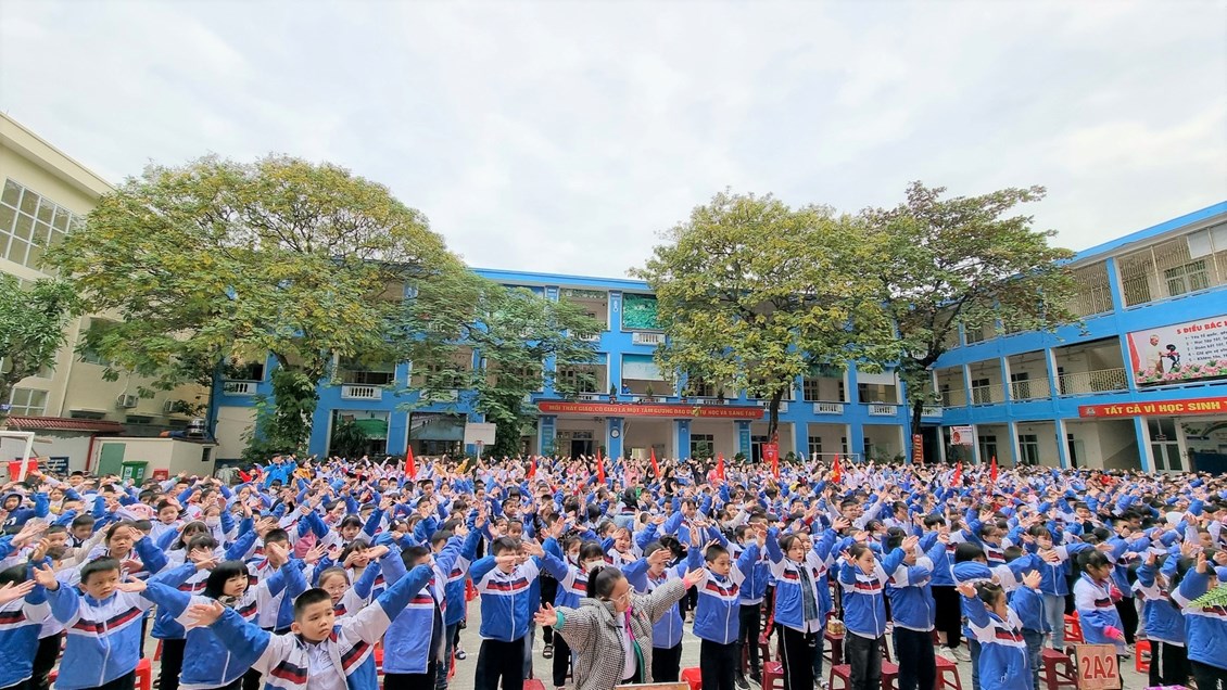 chương trình các em học sinh toàn trường được giao lưu nhảy Flashmob các bài về