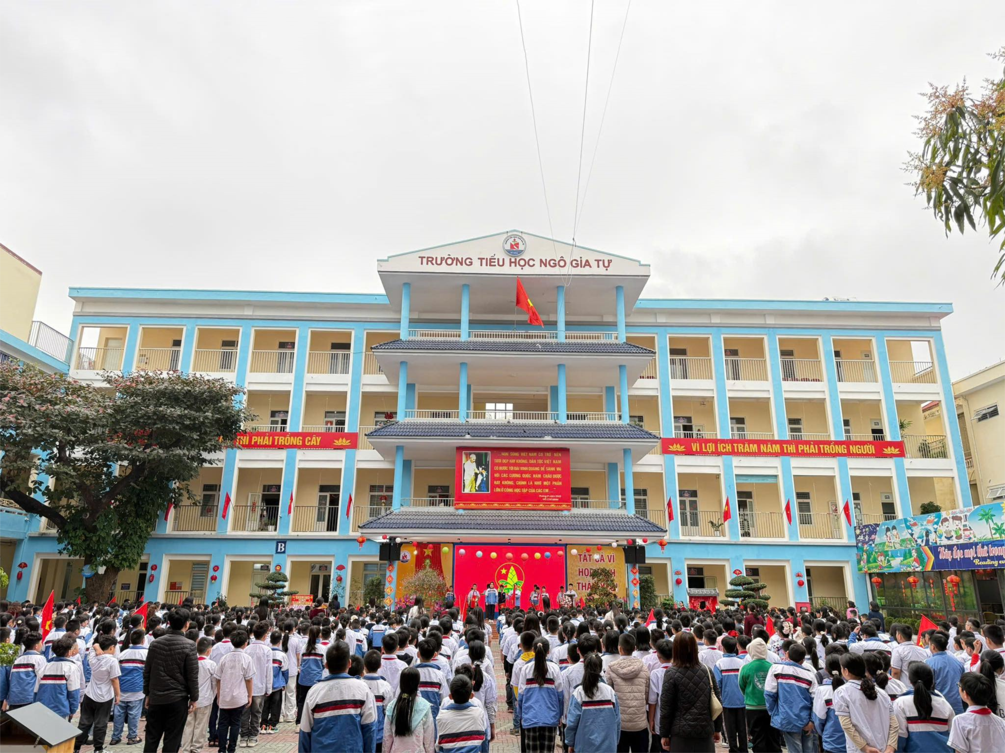 dịu nhẹ của những ngày đầu xuân Bính Ngọ, sân trường Tiểu học Ngô Gia Tự như bừng