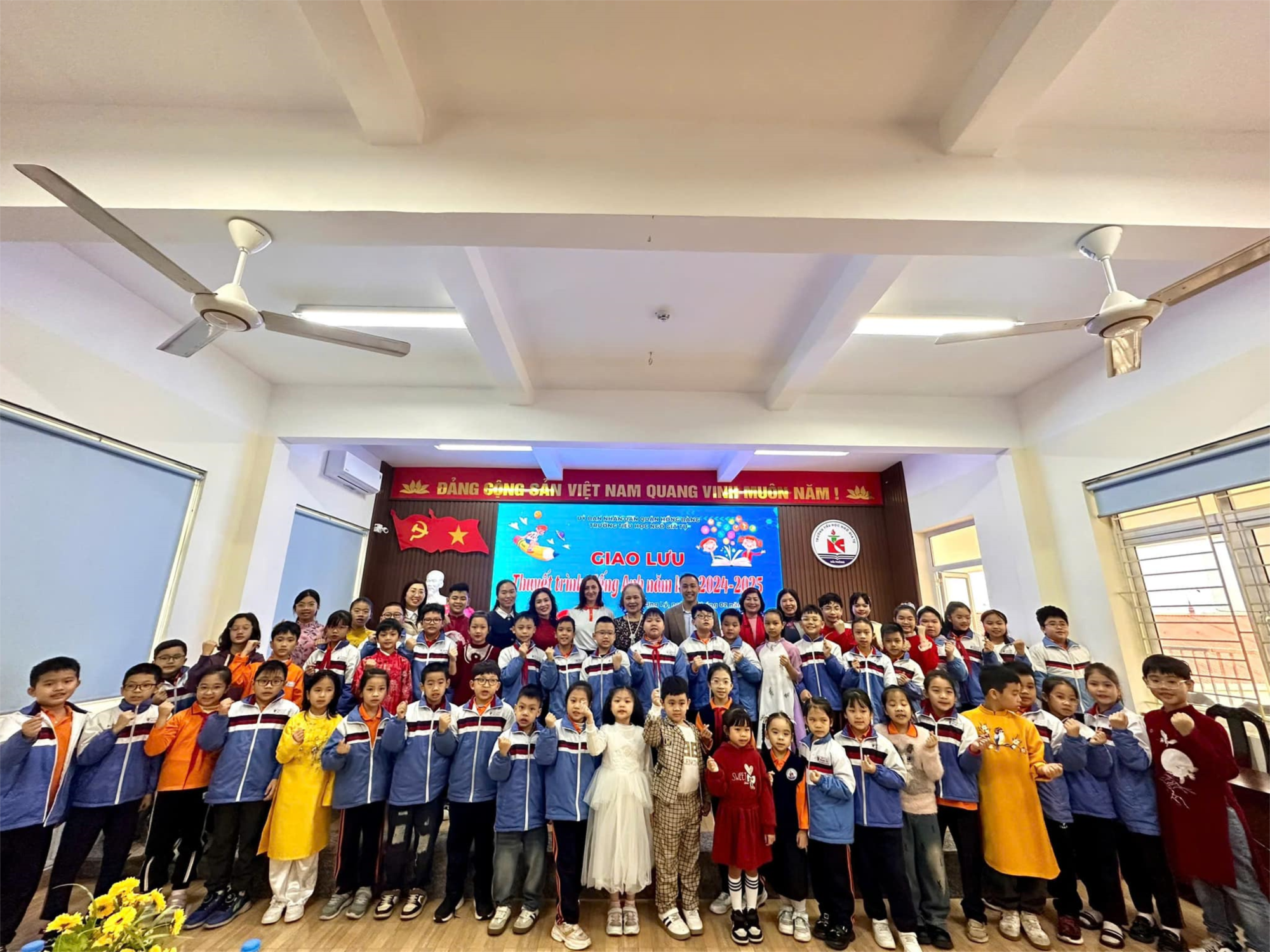🌷Sáng ngày 18/02/2025, trường Tiểu học Ngô Gia Tự tổ chức giao lưu “Thuyết trình Tiếng Anh” nhằm tỏ chức sân chơi, khuyến khích học sinh chủ động, tích cực học ngoại ngữ; tạo cơ hội cho các em được nghe, nói tiếng Anh và được chia sẻ kinh nghiệm học Tiếng Anh. Đồng hành cùng nhà trường còn có Trung tâm Ngoại ngữ EIM