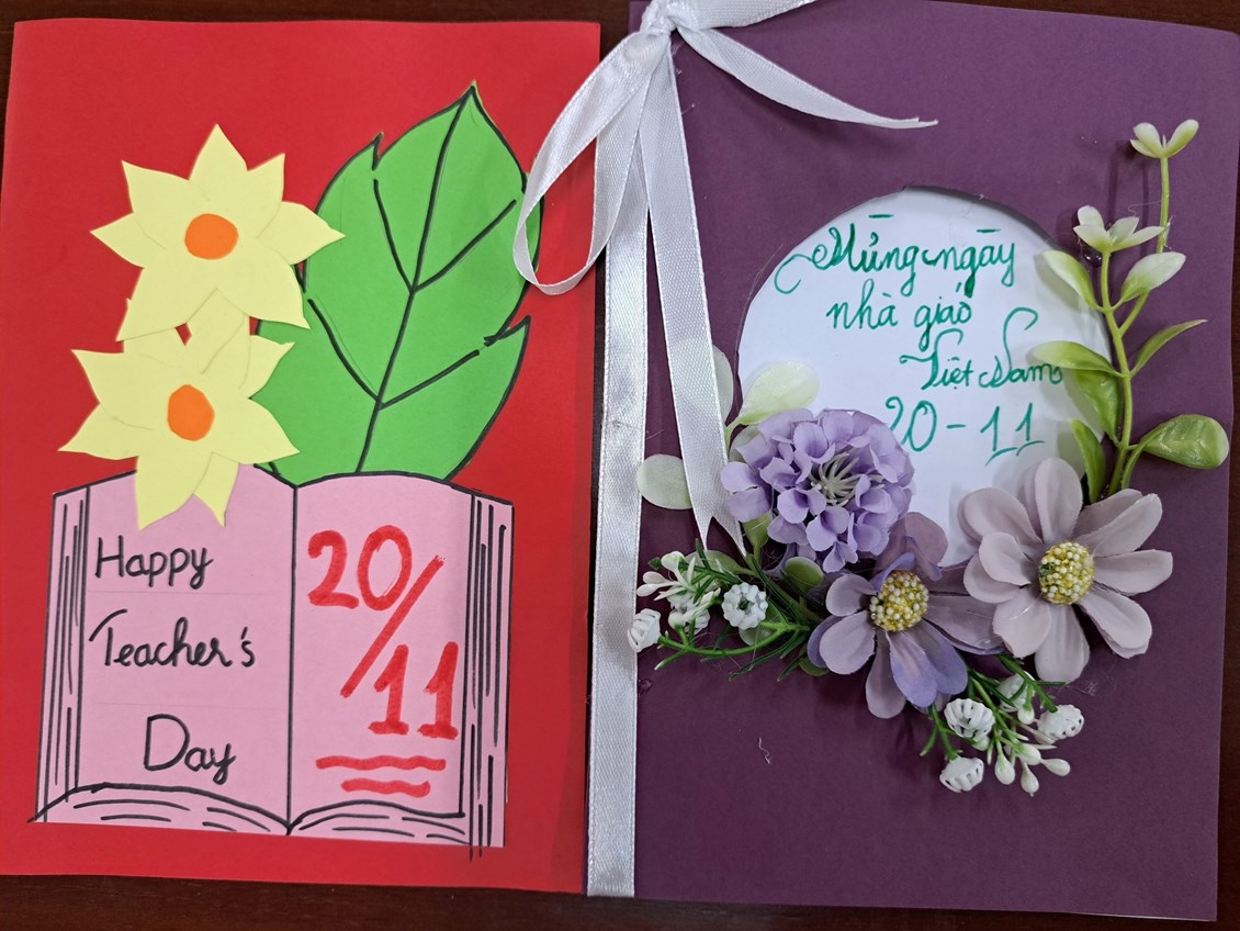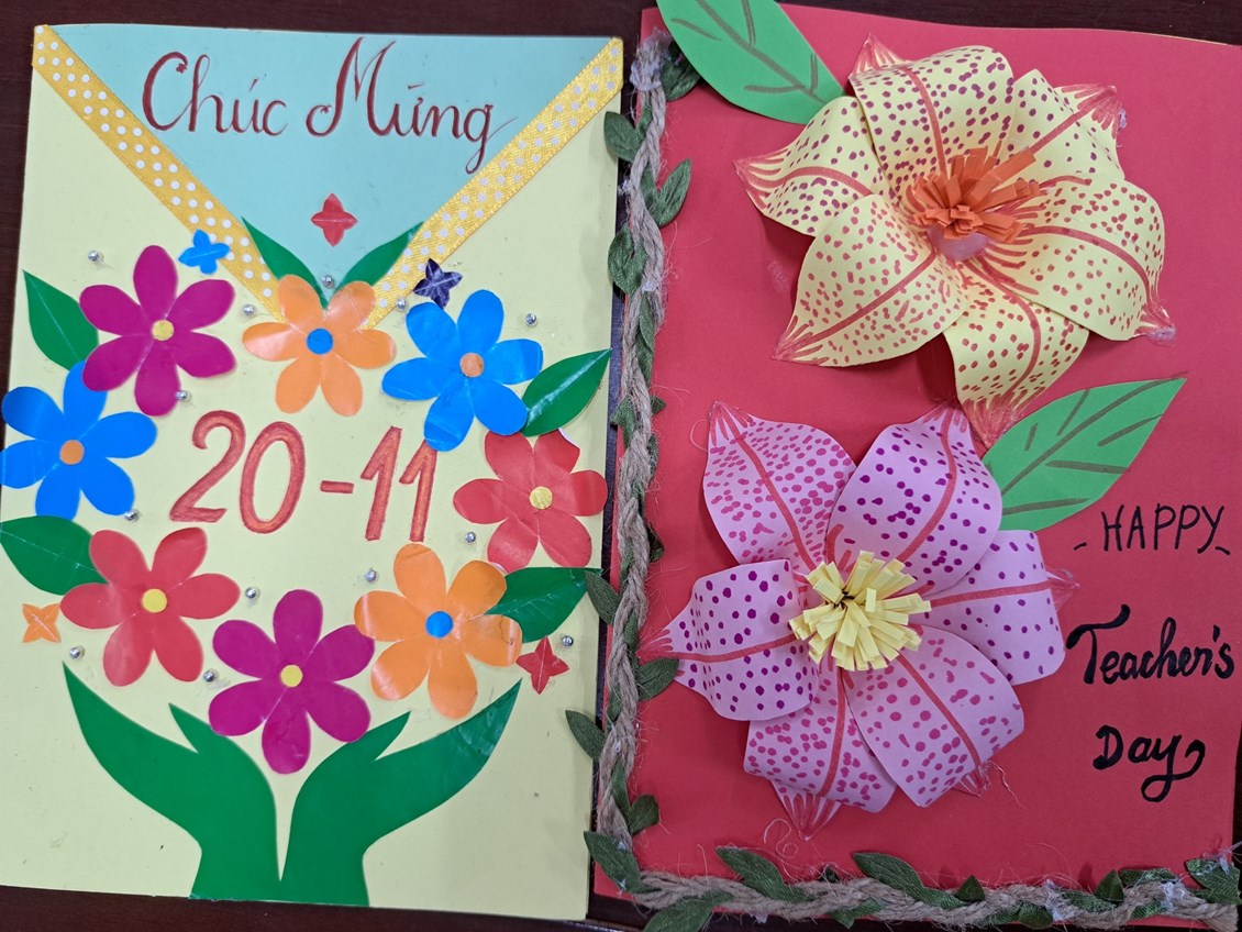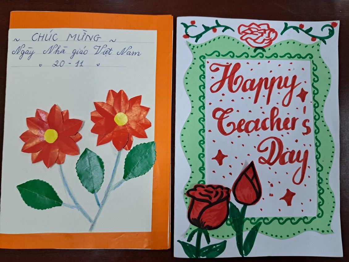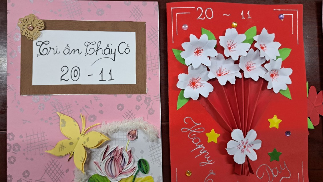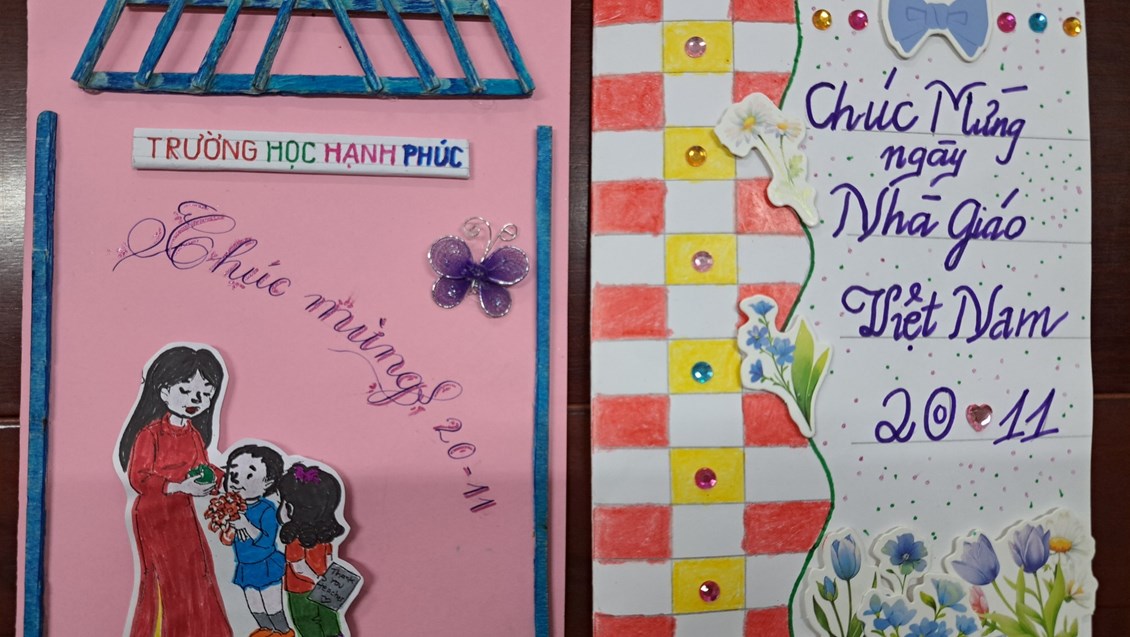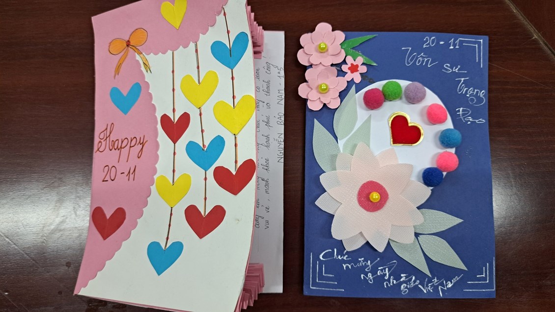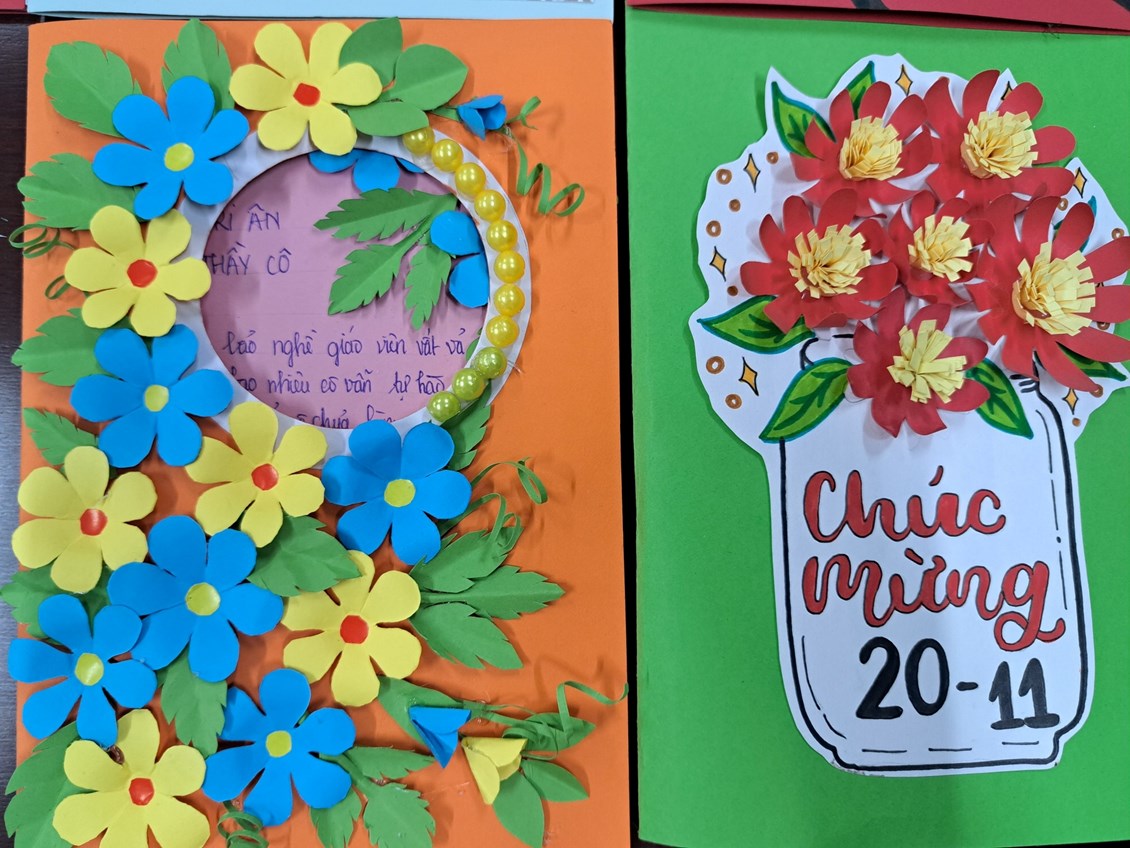 liên đội "Làm bưu thiếp tặng thầy cô nhân ngày nhà giáo Việt Nam