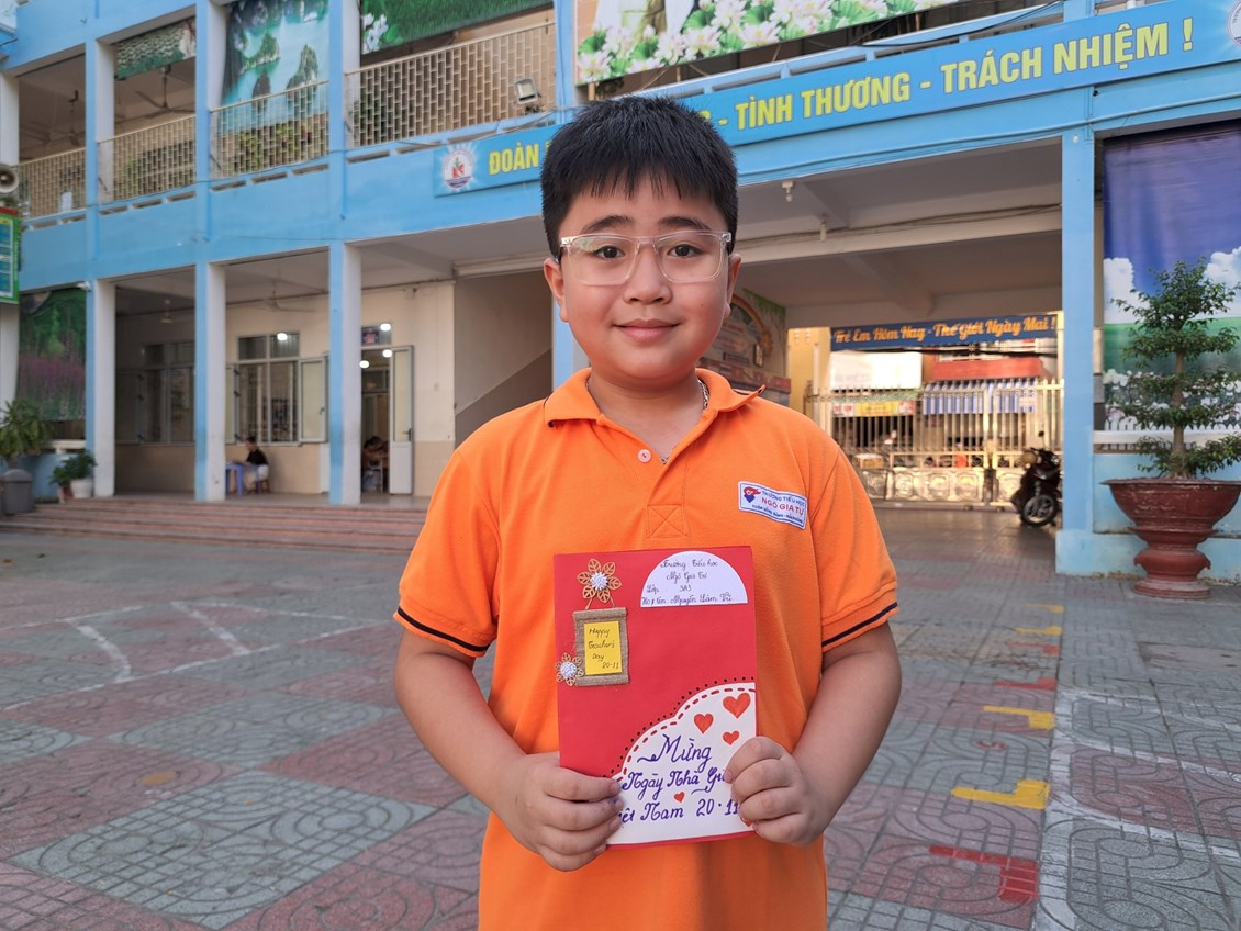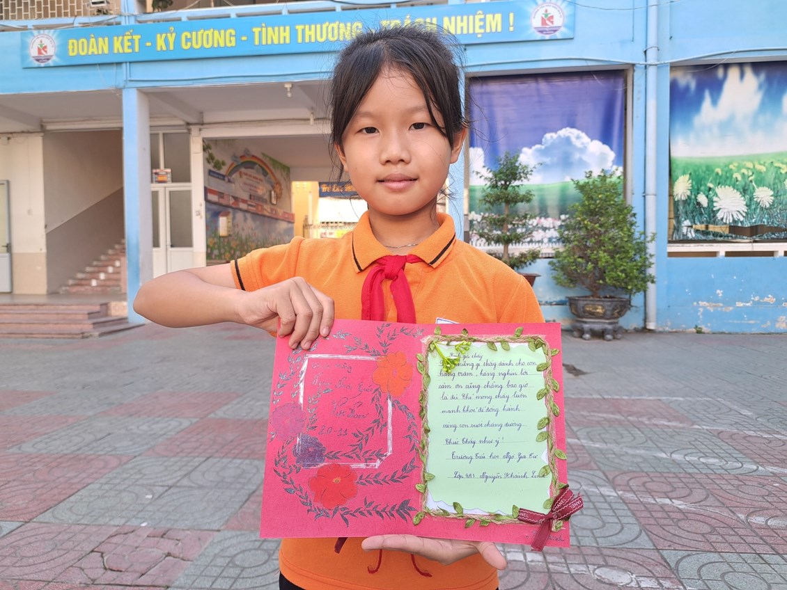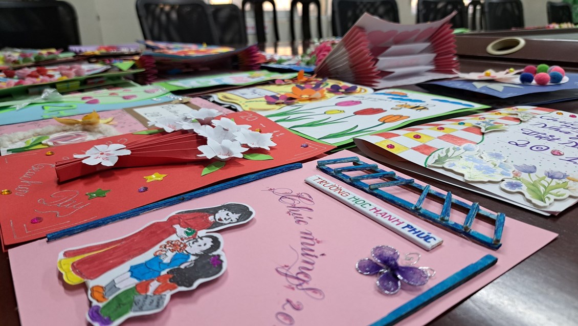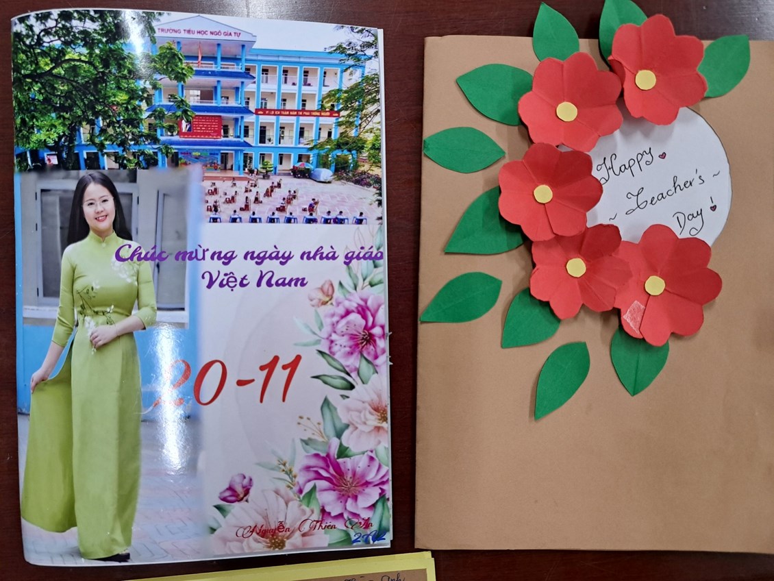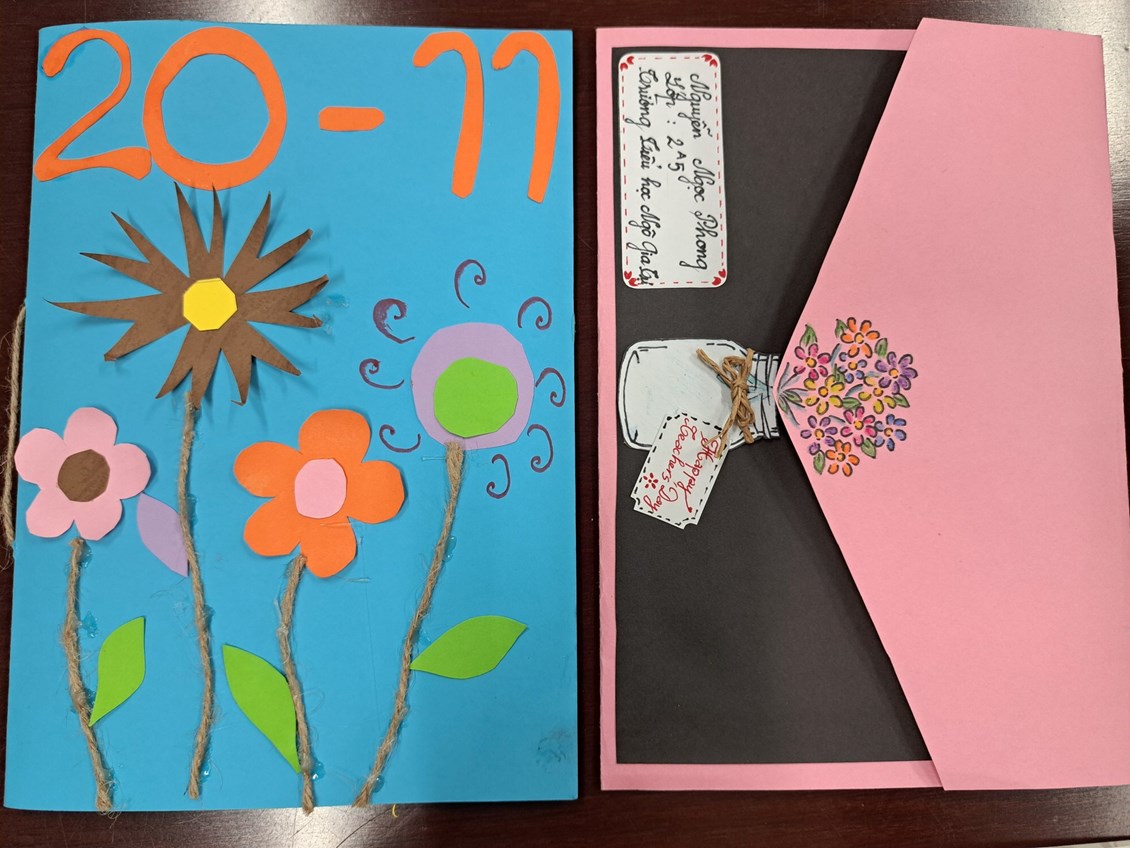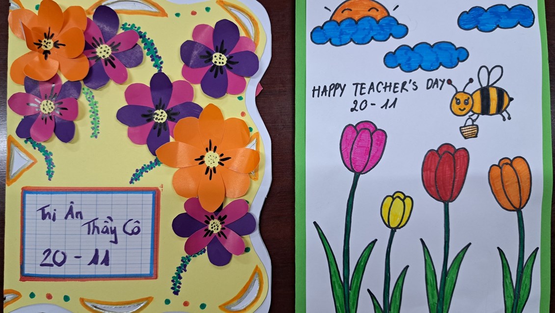 liên đội "Làm bưu thiếp tặng thầy cô nhân ngày nhà giáo Việt Nam