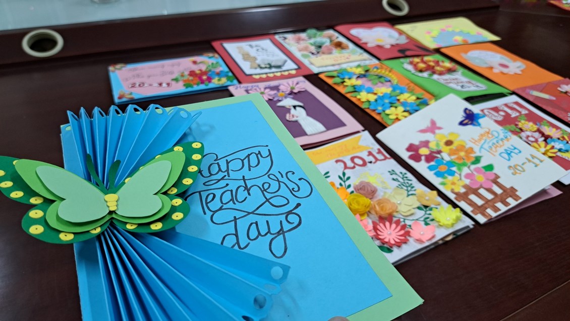 gắng để hoàn thành bưu thiếp tặng thầy cô, đó là tình cảm chân thành, hồn