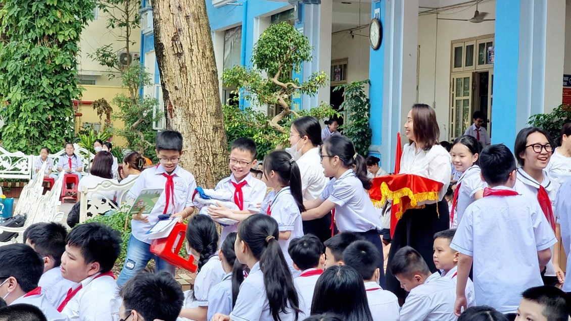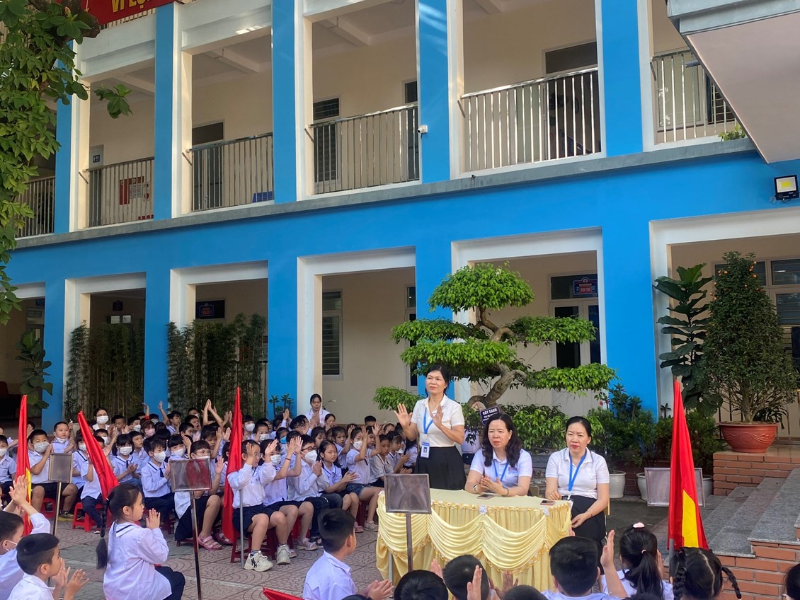 được nghỉ hè, các thầy cô giáo trường TH Ngô Gia Tự tổ chức buổi tuyên truyền